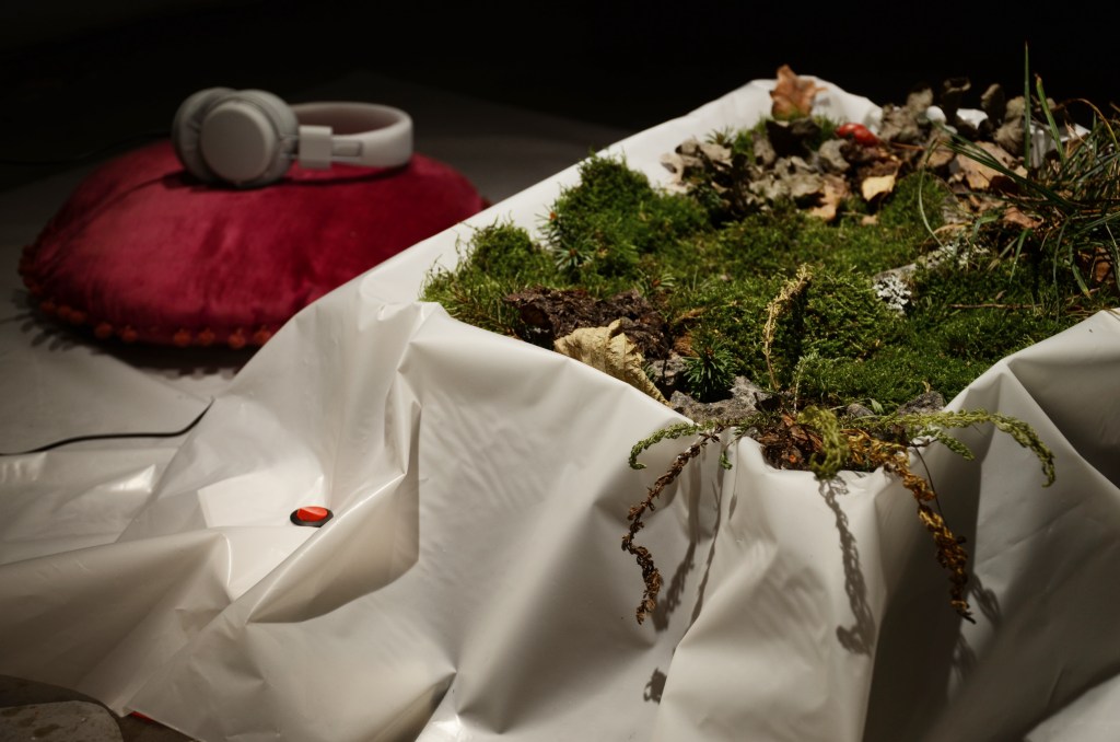 Through 10 min. sound guided experience, the audience is introduced into a haptic-sonic microcosmos of valleys, mountains and wetlands. By activating the cutaneous senses, the nuances of the surface uncover and the inter-relations become palpable [imagine the smell of my fingers].